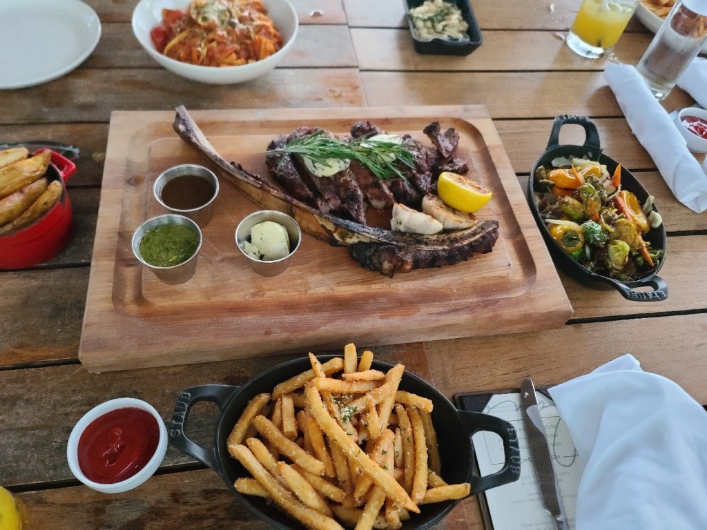 When our time on the water came to an end, we returned to our hotel, which had an outdoor restaurant by the water. We took in the sights, chatted some more, and ordered an early dinner. We enjoyed an outdoor dinner at the Baia Beach Club.