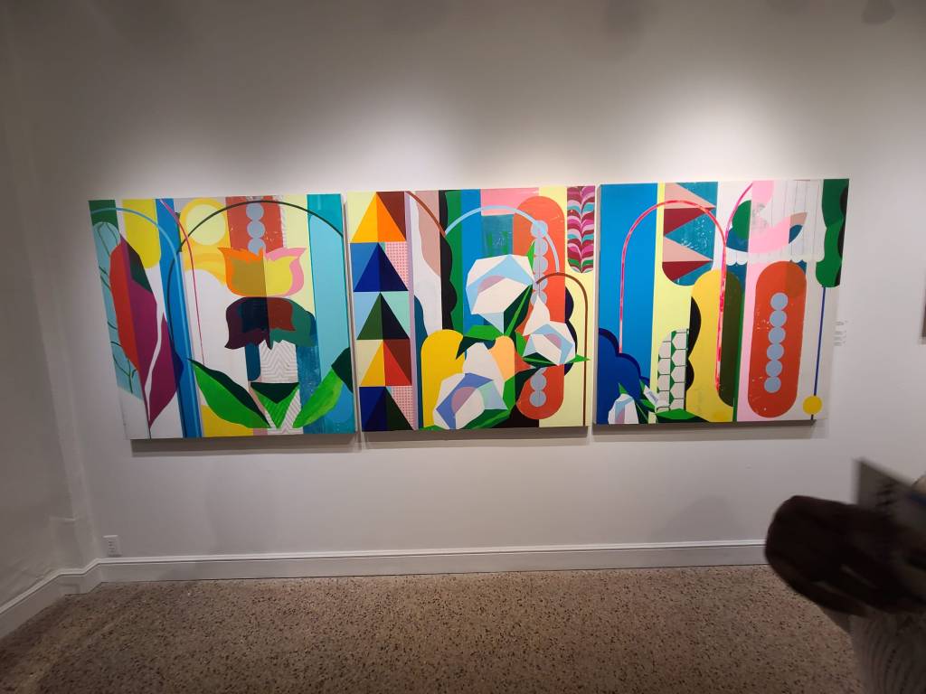 When I left Duane Reed Gallery, I knew there was something else I needed to do. I started walking to a section of CWE that I do not normally go to. I kept walking and told myself I was going to turn around if I didn’t see anything else.I made a mental note to turn around by a tree that was lit up with string lights.As soon as I approached the tree, I saw a man standing outside a door. Wouldn’t you know it, I was at the entrance of another art gallery called Square One Gallery .I guess you could say the art was calling me becauseI had no idea there was a gallery down that way.I walked to the 2nd floor and indeed there was an art exhibit by a Miami- based artist, Dan Alva. His exhibit was called Something out of Nothing. According to his bio, his style incorporates classics and repurposes them for newer audiences. I browsed around and saw some cool pieces.After a while, I decided to leave and head home.