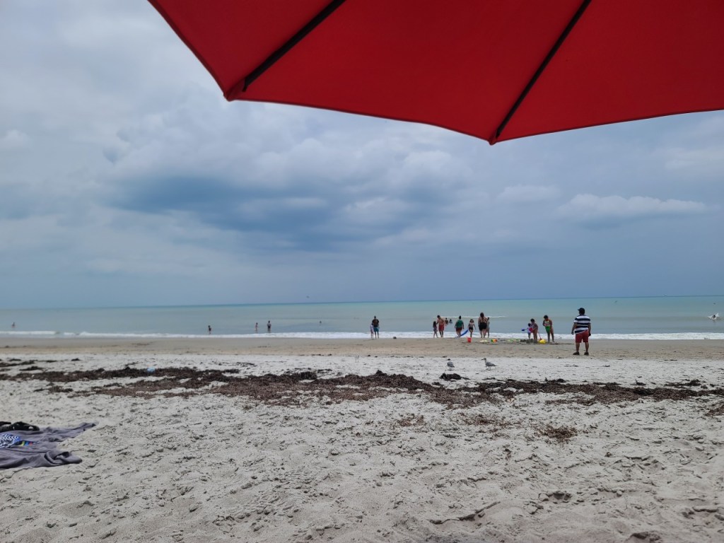 This was a beach day. Since Orlando doesn’t have beaches, we drove about an hour to Cocoa Beach. The weather was perfect. We found a quieter area, rented an umbrella and chairs, and spent the morning lounging and swimming. It was peaceful until more people started showing up by late morning.
